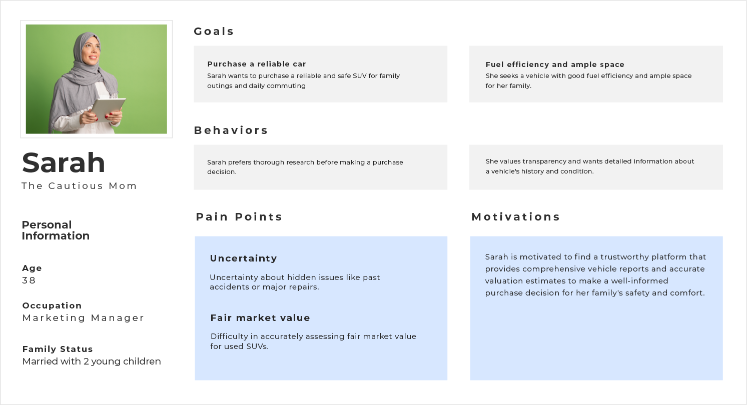 We interviewed individuals who were in the process of buying a used car or had recently purchased one. We aimed to understand their challenges, preferences, and expectations when it comes to accessing information about used vehicles.